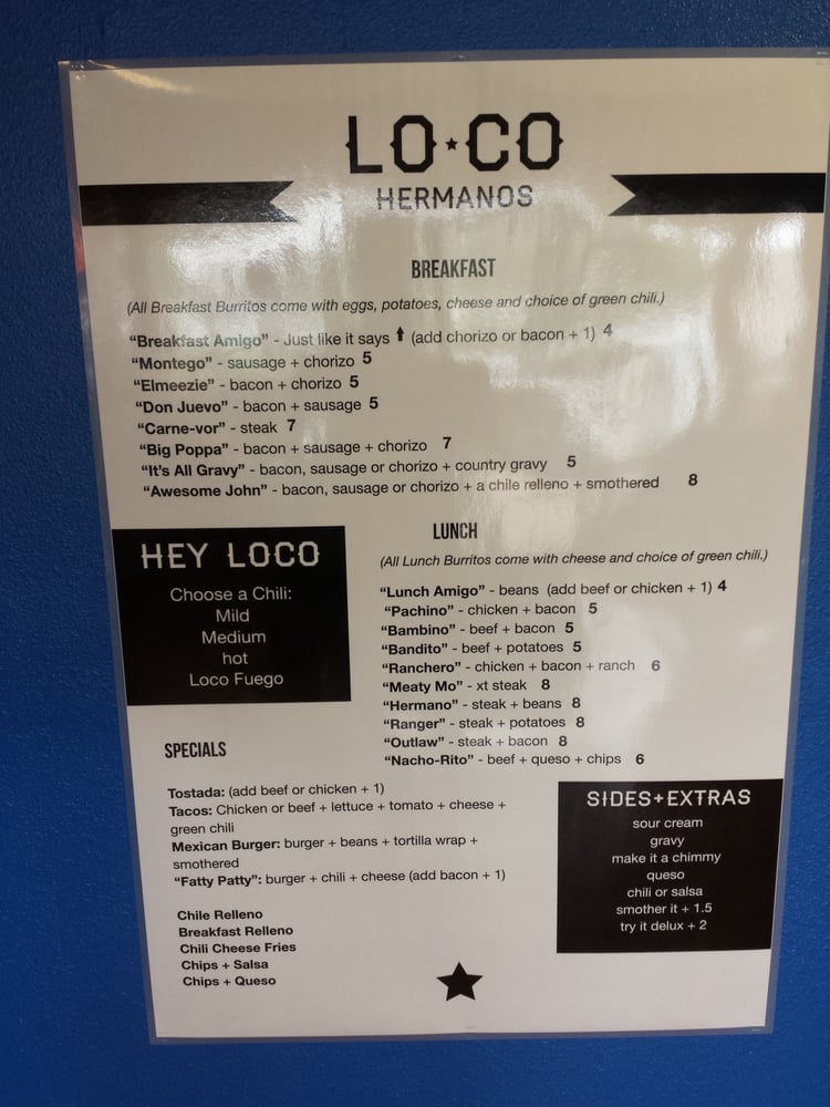 Loco Hermanos is a Mexican restaurant located in Louisville, CO, known for its delicious breakfast burritos and Mexican cuisine. Customers rave about the Huevos Relleno breakfast burrito and the Don Huevo burrito, filled with bacon and sausage. The restaurant offers takeout, reservations, and has many vegetarian options. Customers appreciate the friendly service, large portions, and affordable prices. Loco Hermanos is a popular spot for breakfast, with options like the Big Poppa breakfast burrito and the chili relleno breakfast platter with green chili. The restaurant's casual atmosphere and great food make it a favorite among locals and visitors alike. Next time you're in the area, be sure to stop by Loco Hermanos for a tasty and satisfying meal.